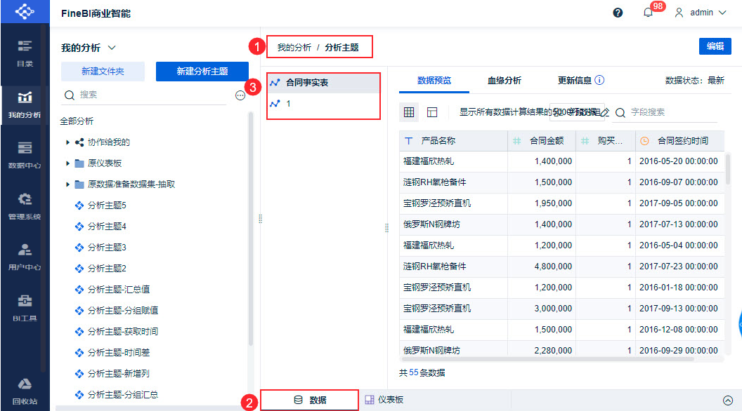 业务用户在进行数据分析前,需要创建分析主题,在分析主题中,可以添加数据,用户进一步的分析。