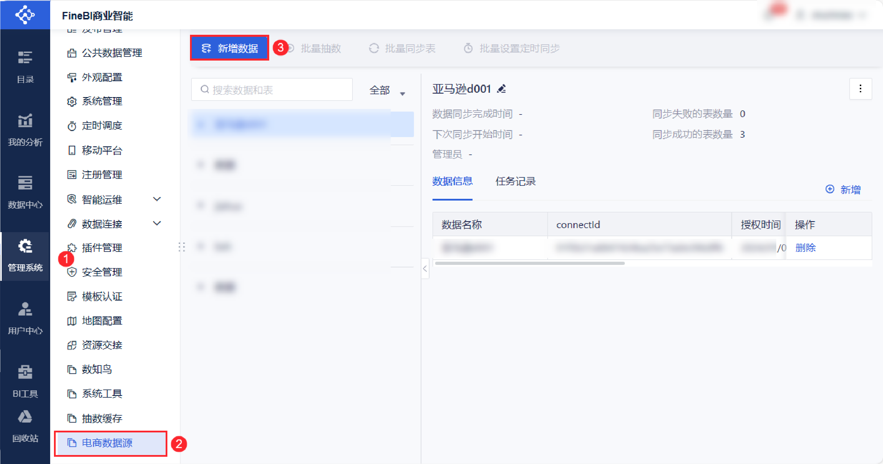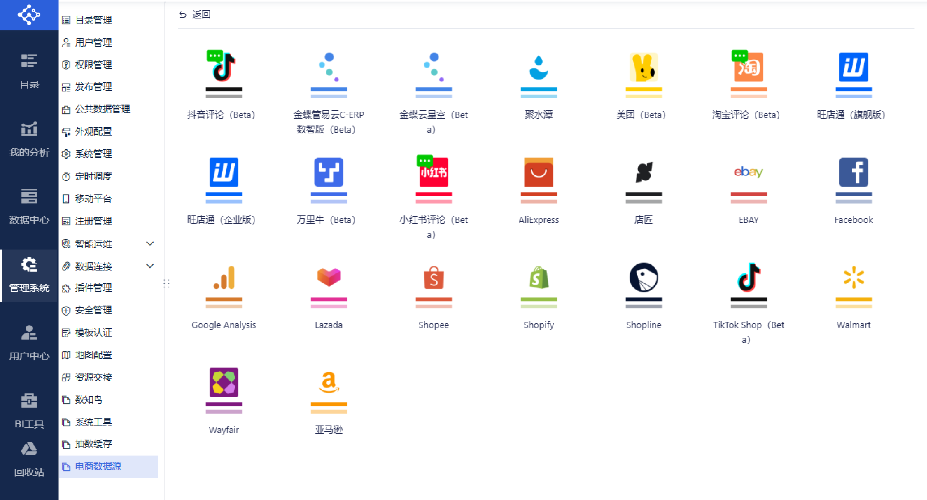 1)进入「管理系统>电商数据源」,点击「新增数据」,如下图所示: