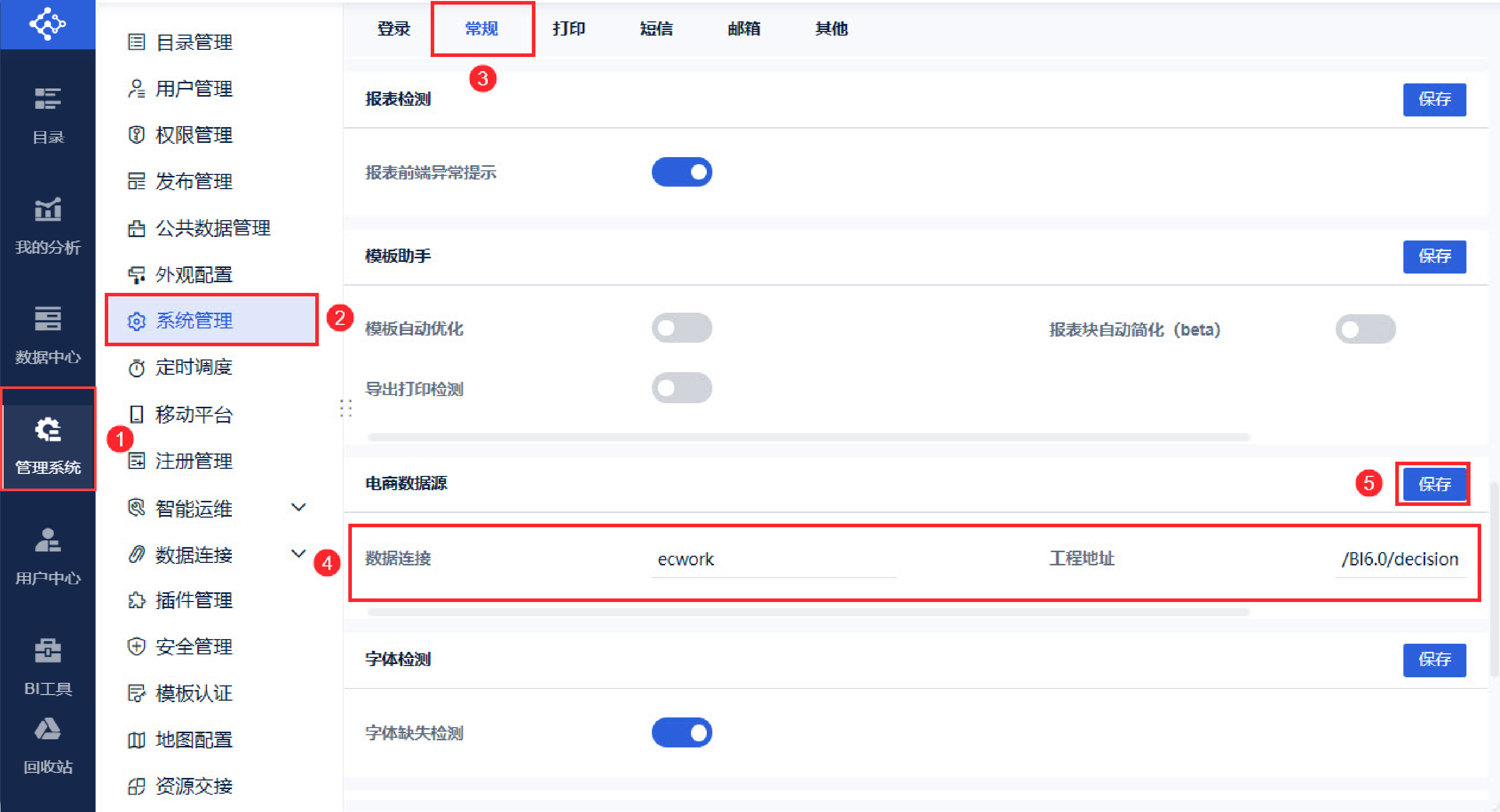 工程地址:填写当前 FineBI 工程域名后面的路径。若 FineBI 工程地址为 https://pcdemo.finebi.com/webroot/decision,即填写 /webroot/decision ;若 FineBI 工程地址为 192.168.1.1:8080/BI6.0/decision,即填写 /BI6.0/decision。