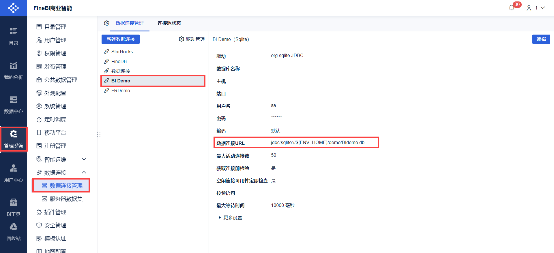 查看后台报错日志,检查是否是数据库驱动与 BI 之间有 JAR 包冲突。