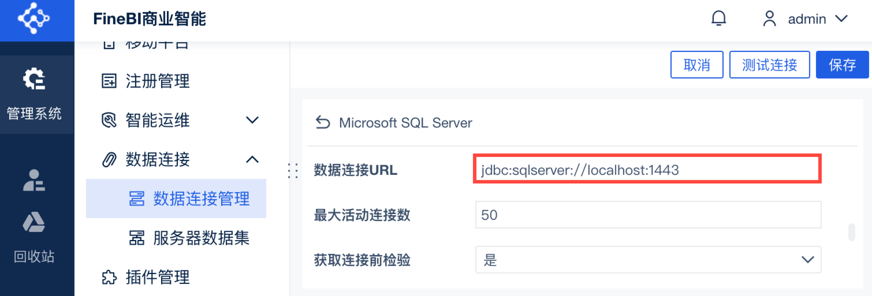 4)修改数据连接的信息。数据连接的「数据连接URL」后加上ssl参数。