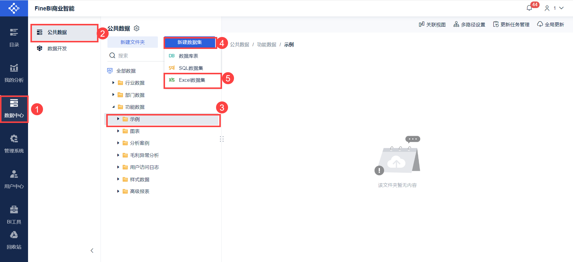 1)下载示例数据:department1.xlsx,选择一个文件夹,将示例数据上传至公共数据,如下图所示: