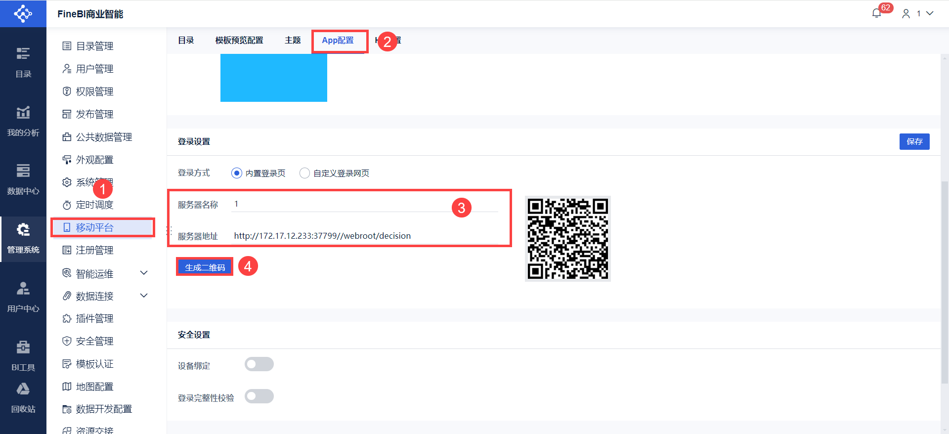 使用「数据分析 App」扫描该二维码,即可跳转至该FineBI工程的登录页。