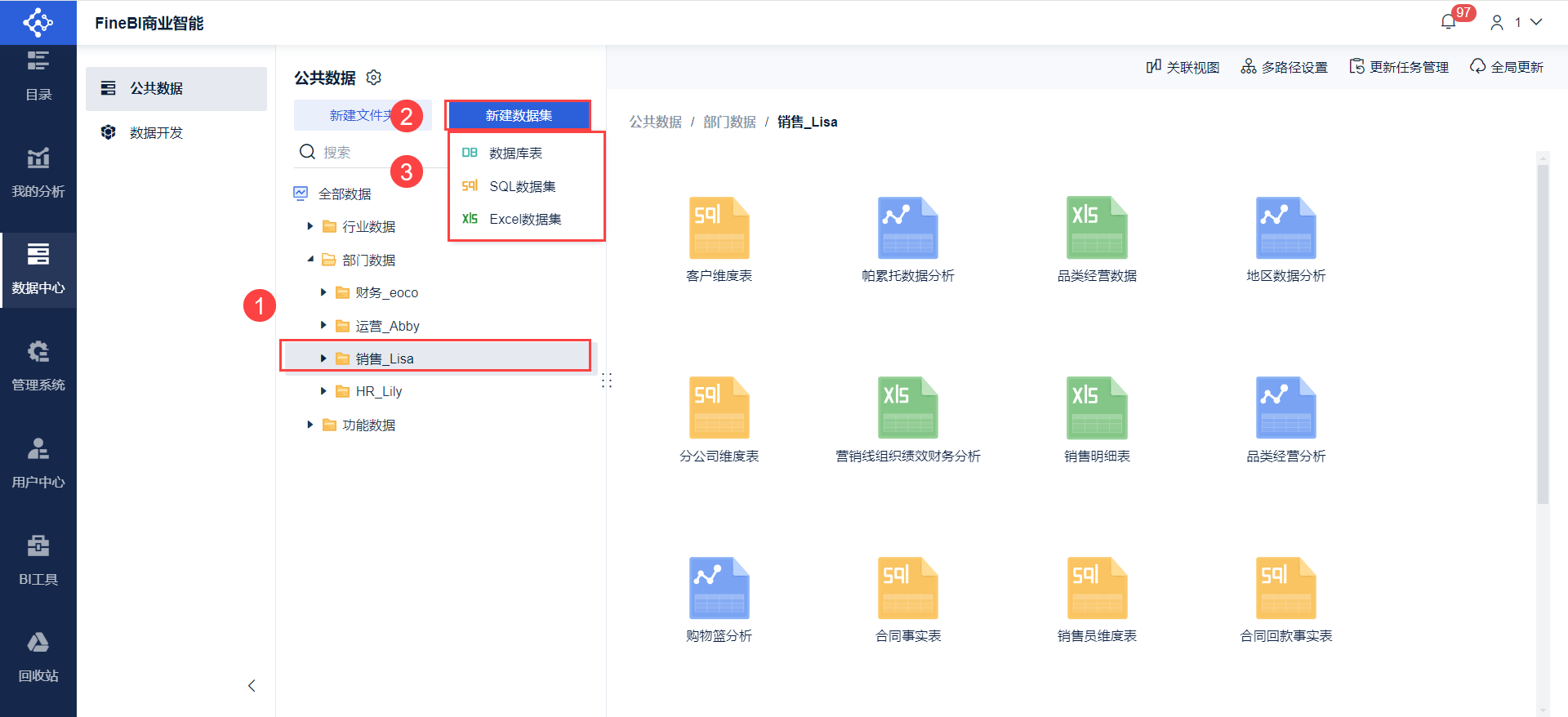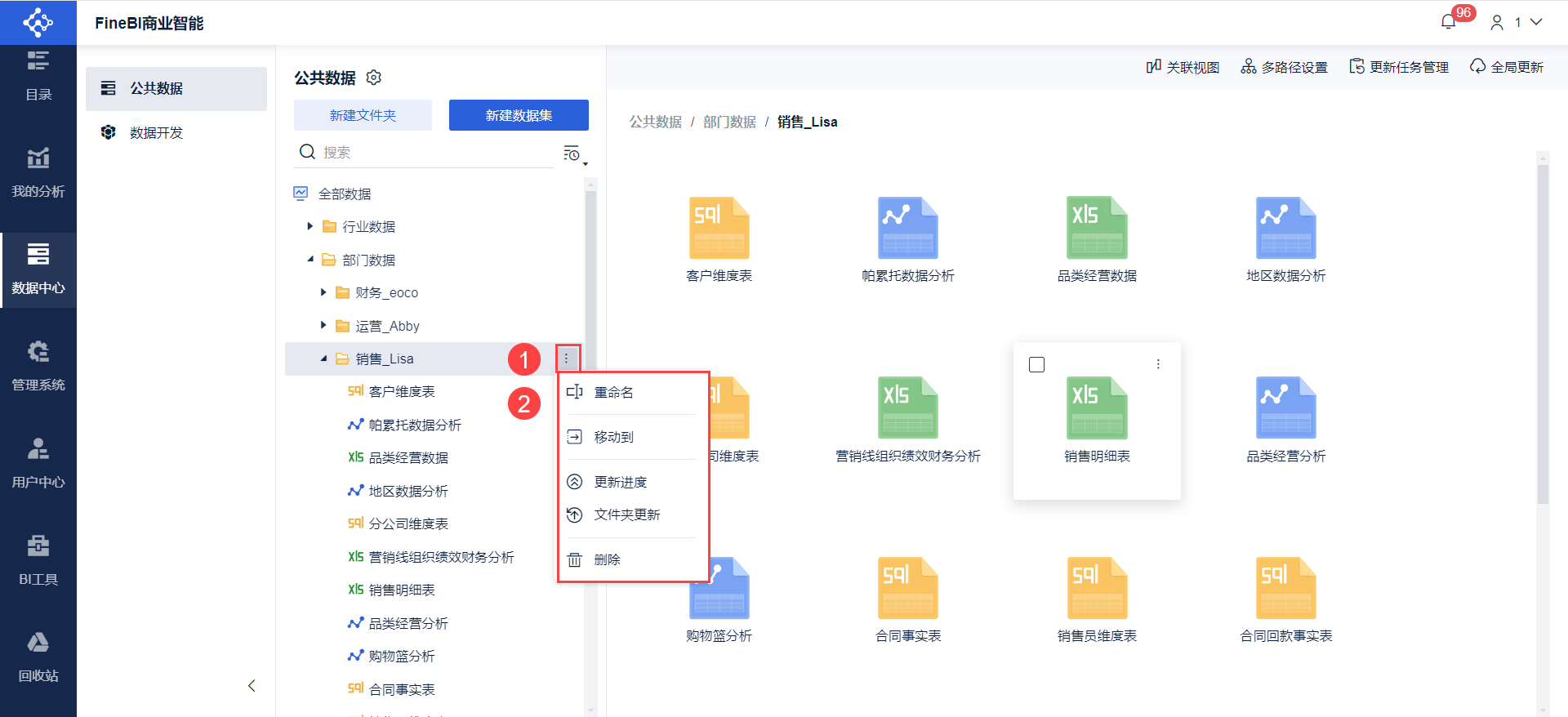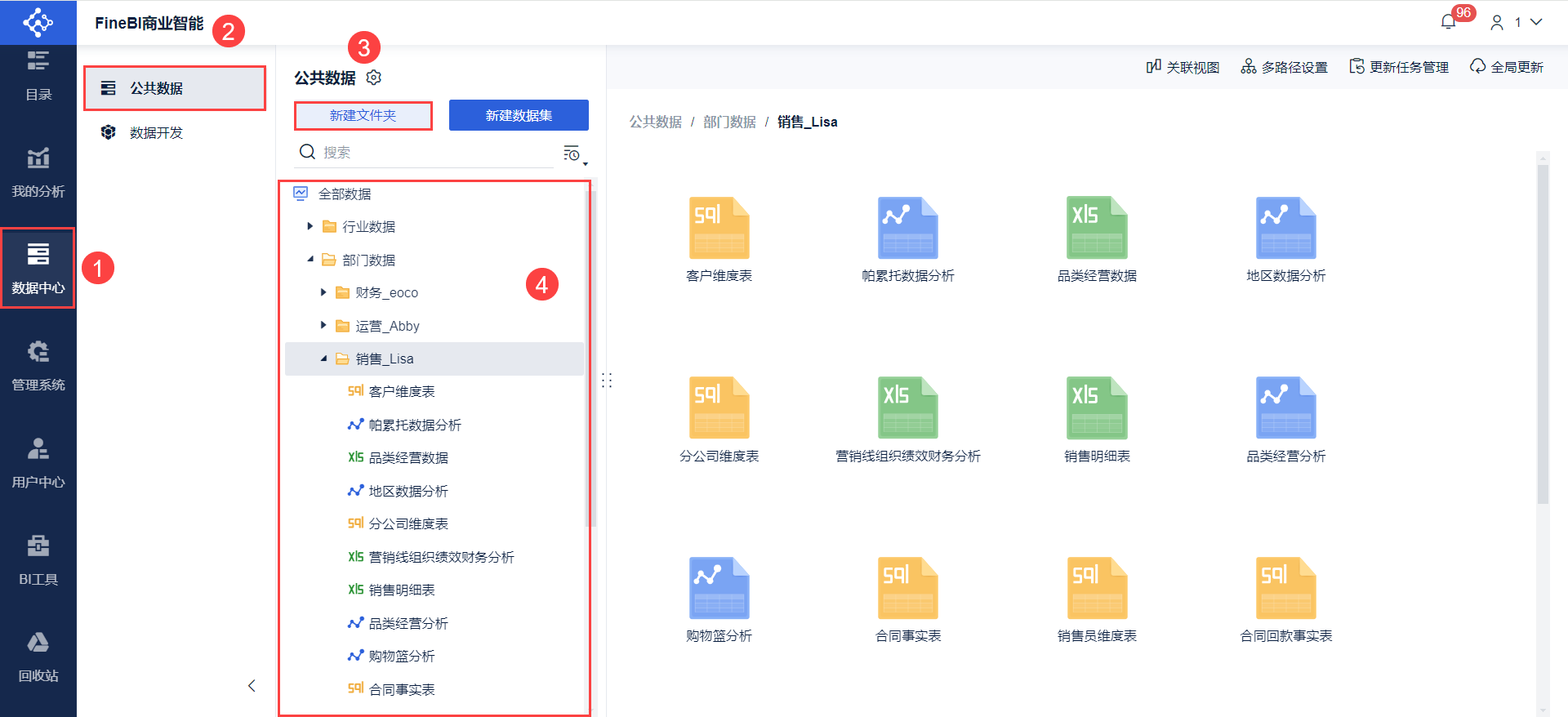 管理员需要搭建「公共数据文件夹体系」进行数据的分组,分门别类的将数据表存放在 BI 中,理清杂乱的数据关系。