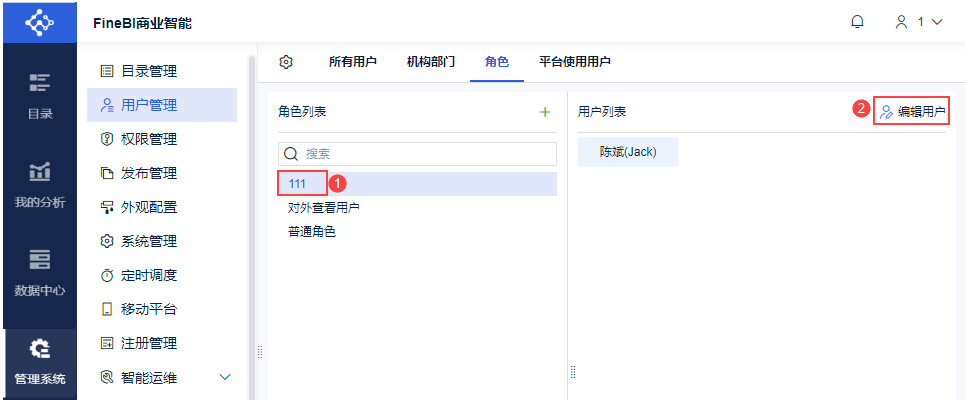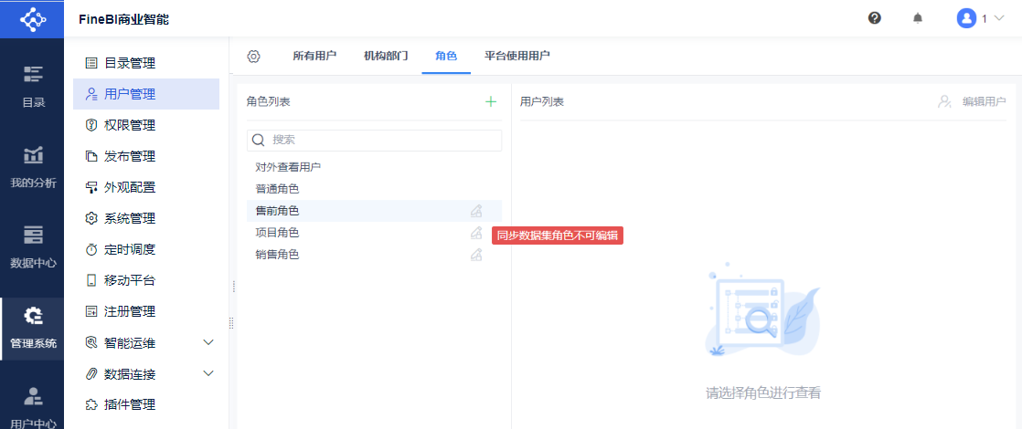 注:从服务器数据集中「同步用户」生成的角色、角色下的用户不支持编辑。
