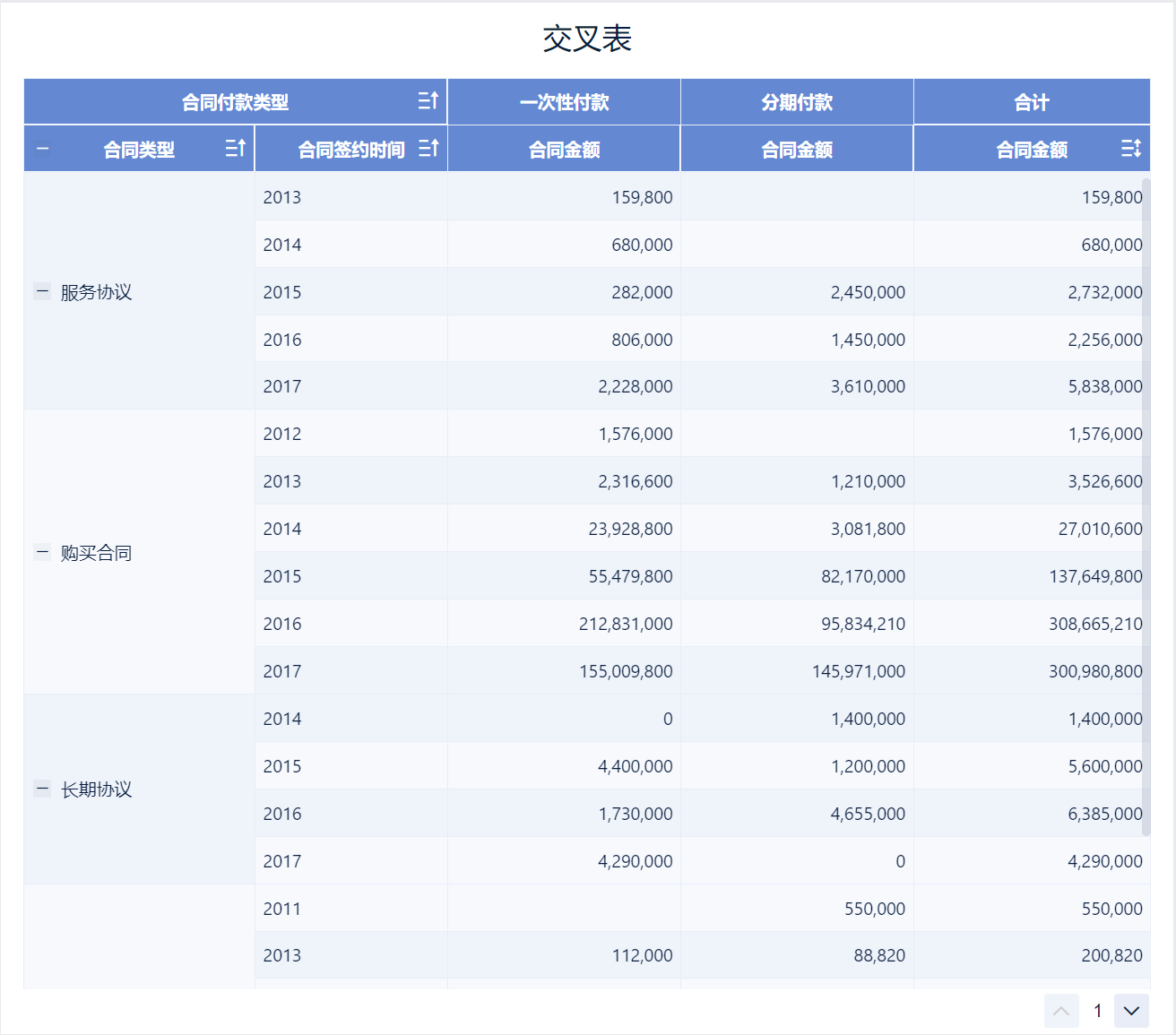 FineBI 为用户提供了三种表格类型:明细表、分组表、交叉表。