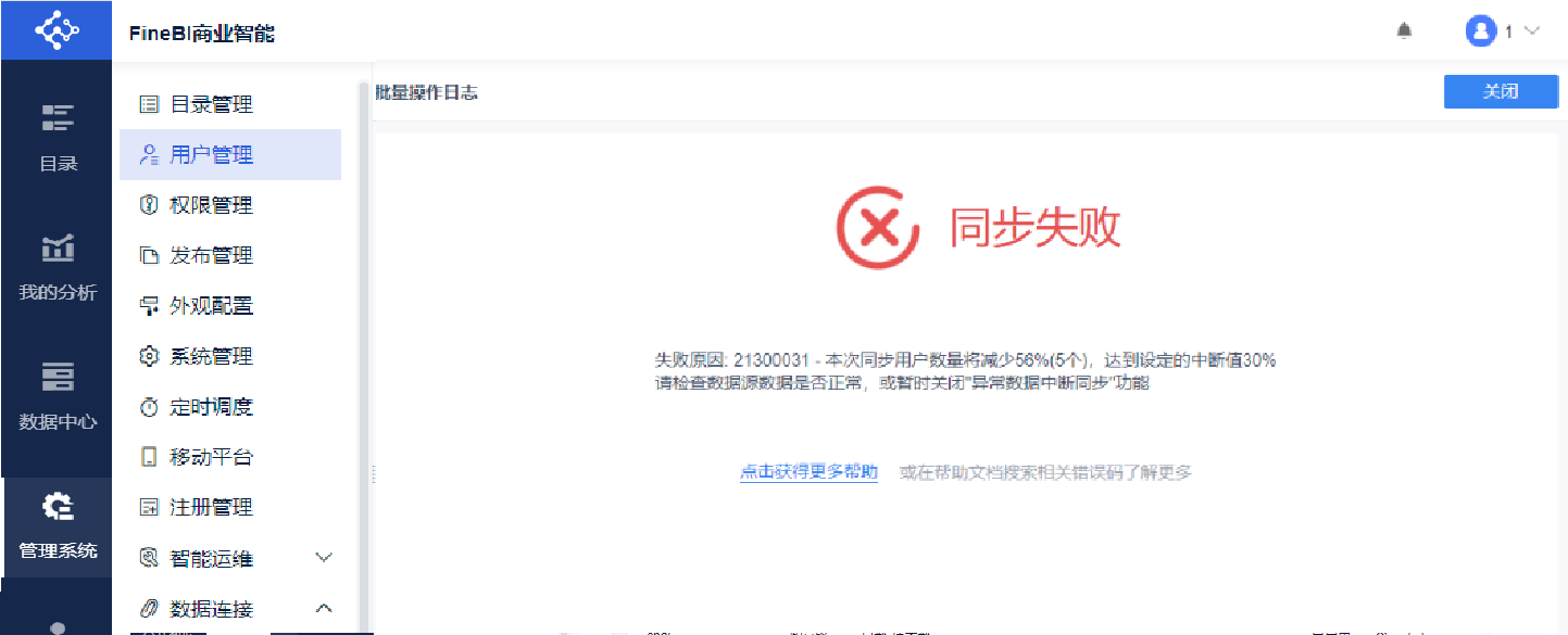 以上情况需要及时通知到对应的管理员,因此FineBI提供「同步失败提醒」功能。