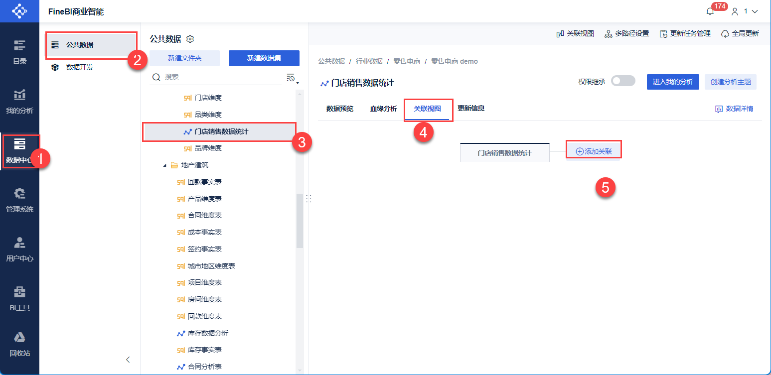 1)选择「合同事实表」并为它添加关联,如下图所示: