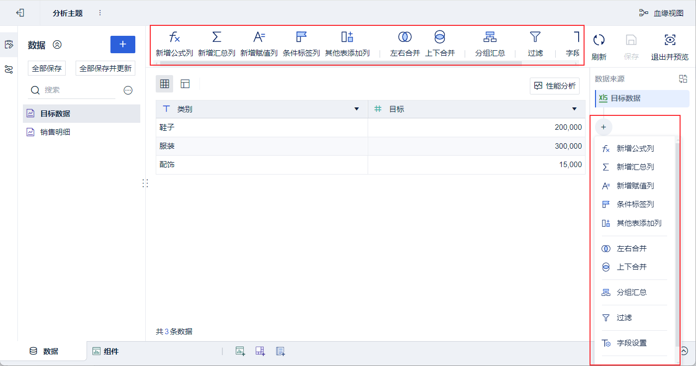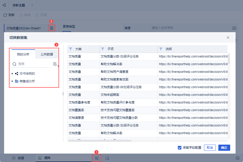当前工程:「我的分析」中所有的数据、「公共数据」中有权限的数据。
