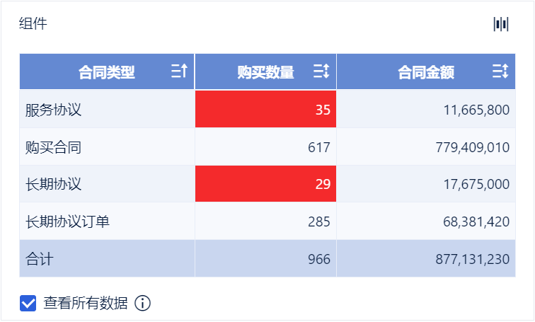 • 设置「合同金额小于 15000000的「购买数量」数据为红底白字,如下图所示: