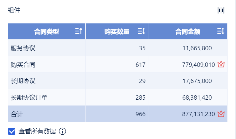 • 设置「购买数量」超过500的「合同金额」数据附上红色皇冠标记,如下图所示: