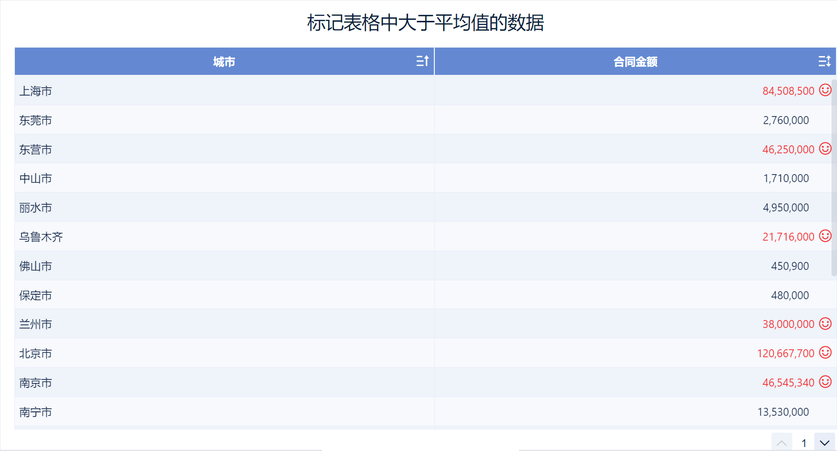 2)例如,将表格中大于平均值的「合同金额」数据附上红色笑脸标记: