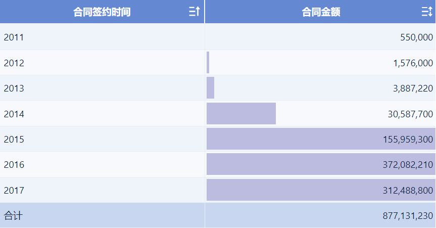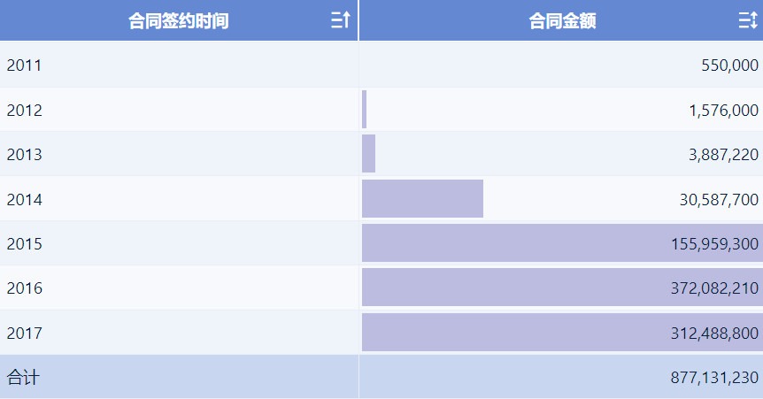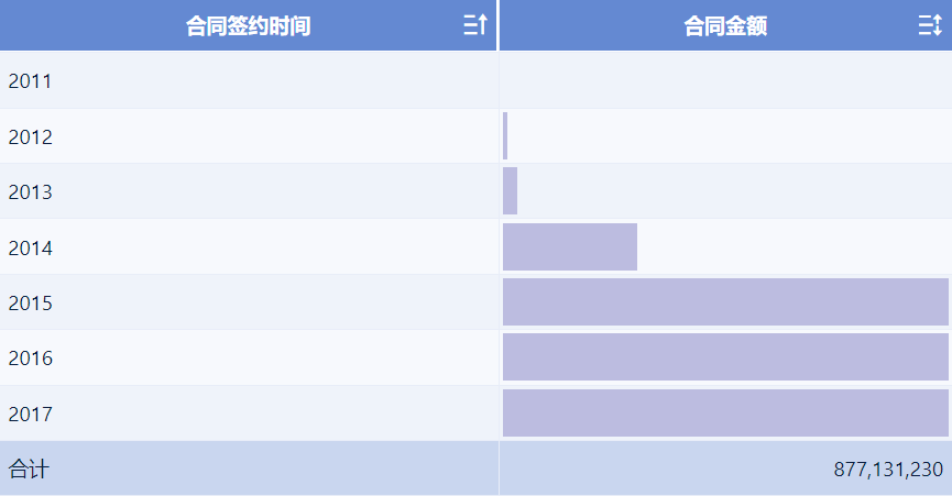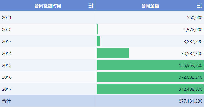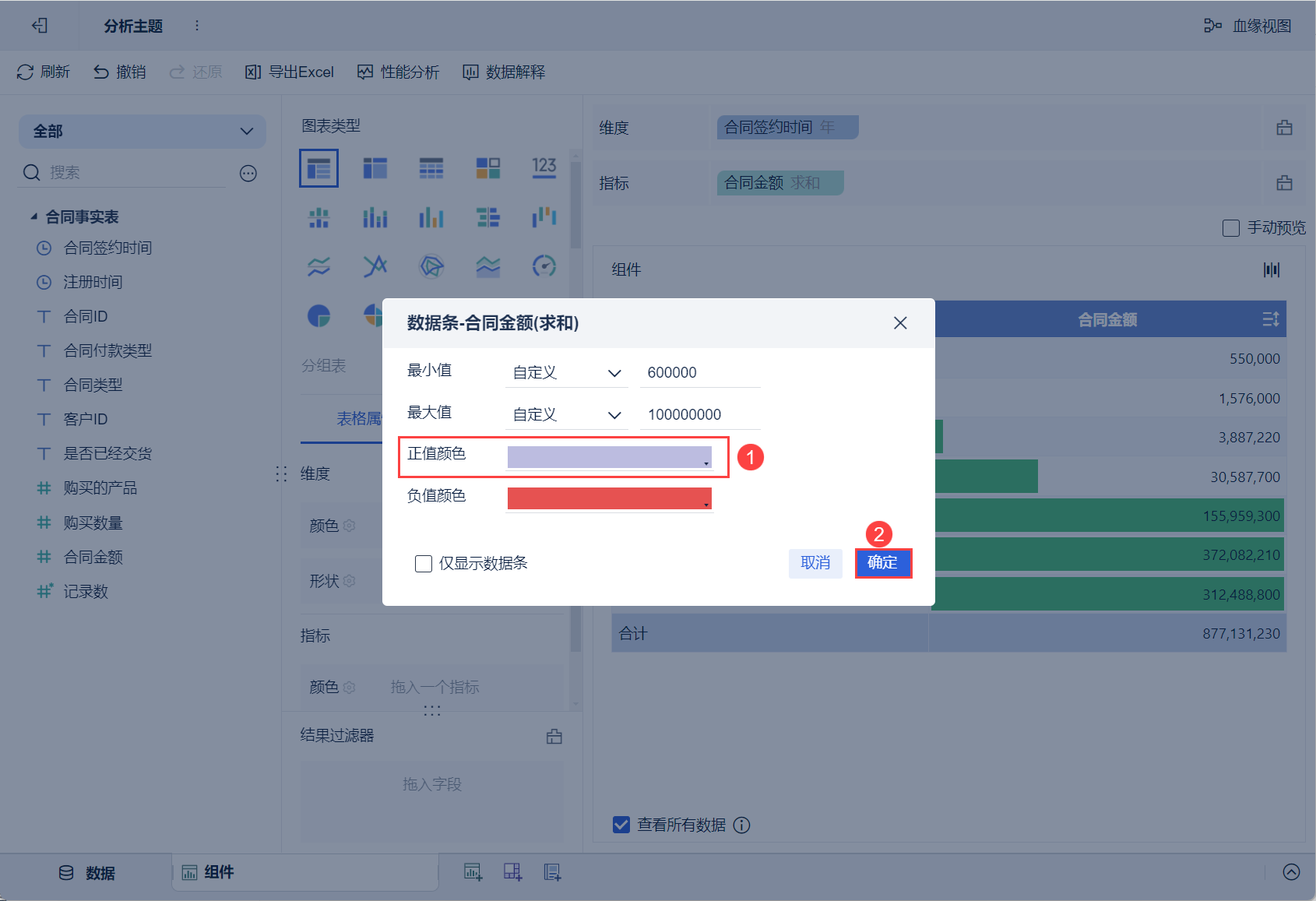 点击指标栏「合同金额」的下拉按钮,选择「开启数据条」,如下图所示: