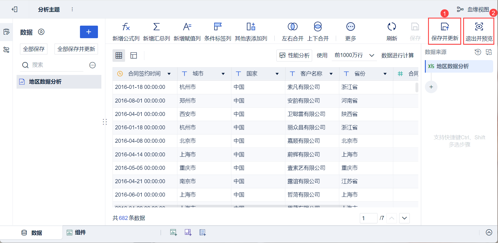 5)数据编辑完成后,点击「保存并更新」、「退出并预览」,数据准备成功,如下图所示: