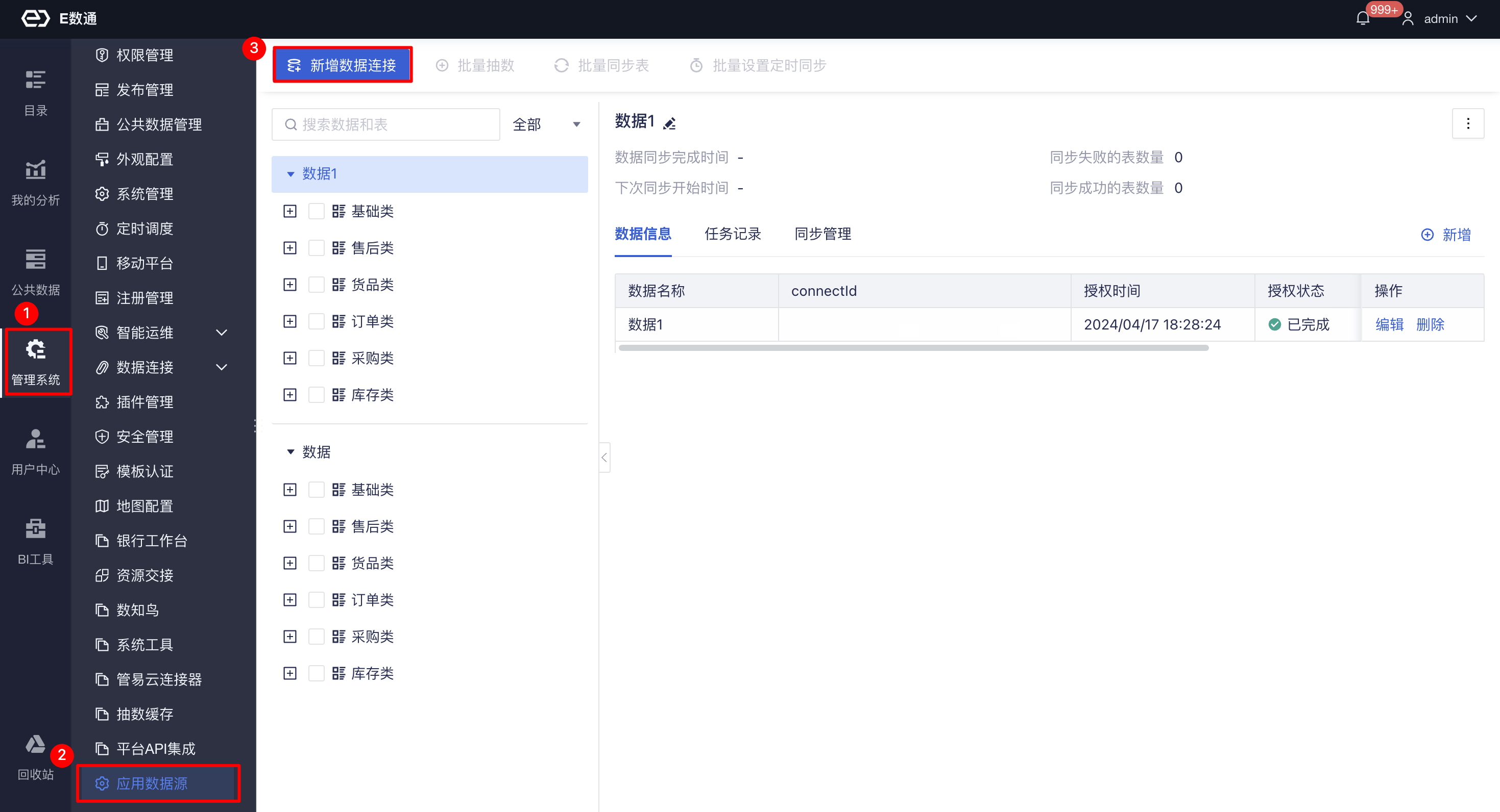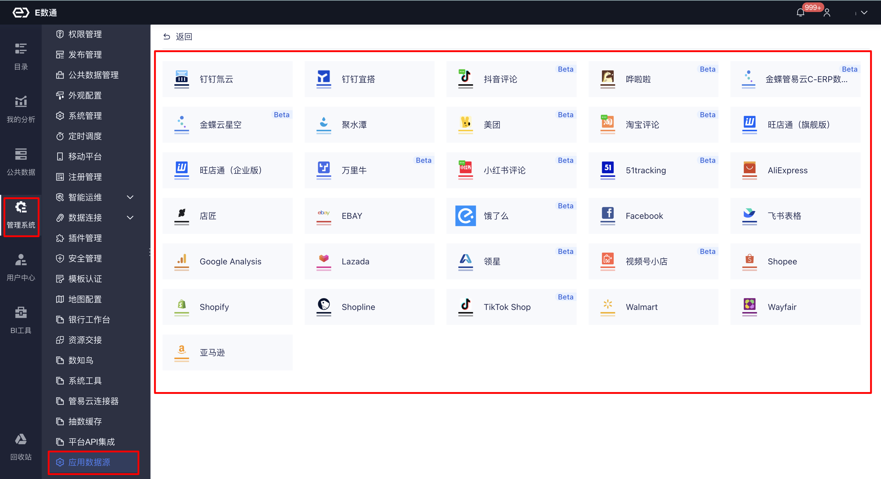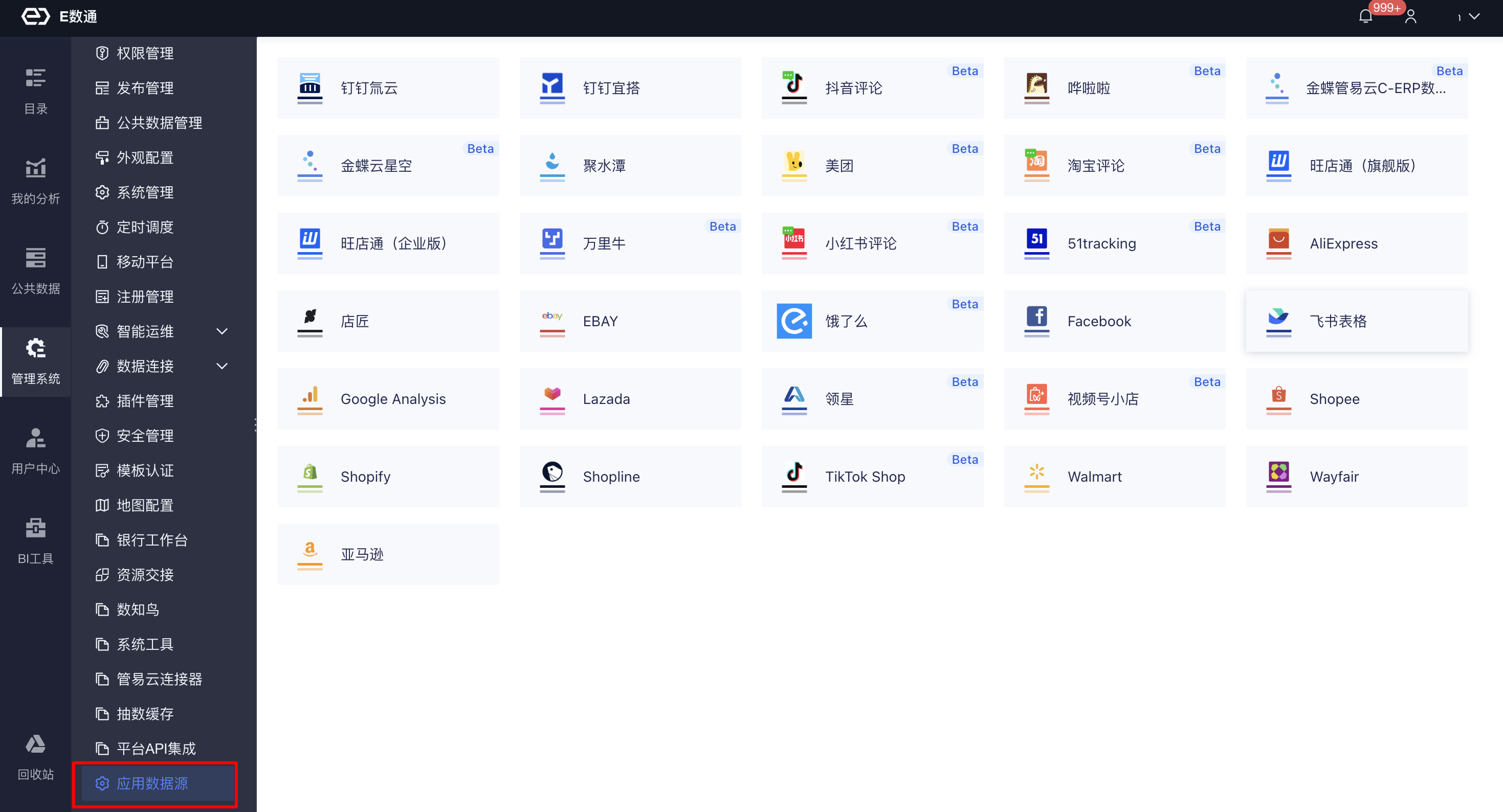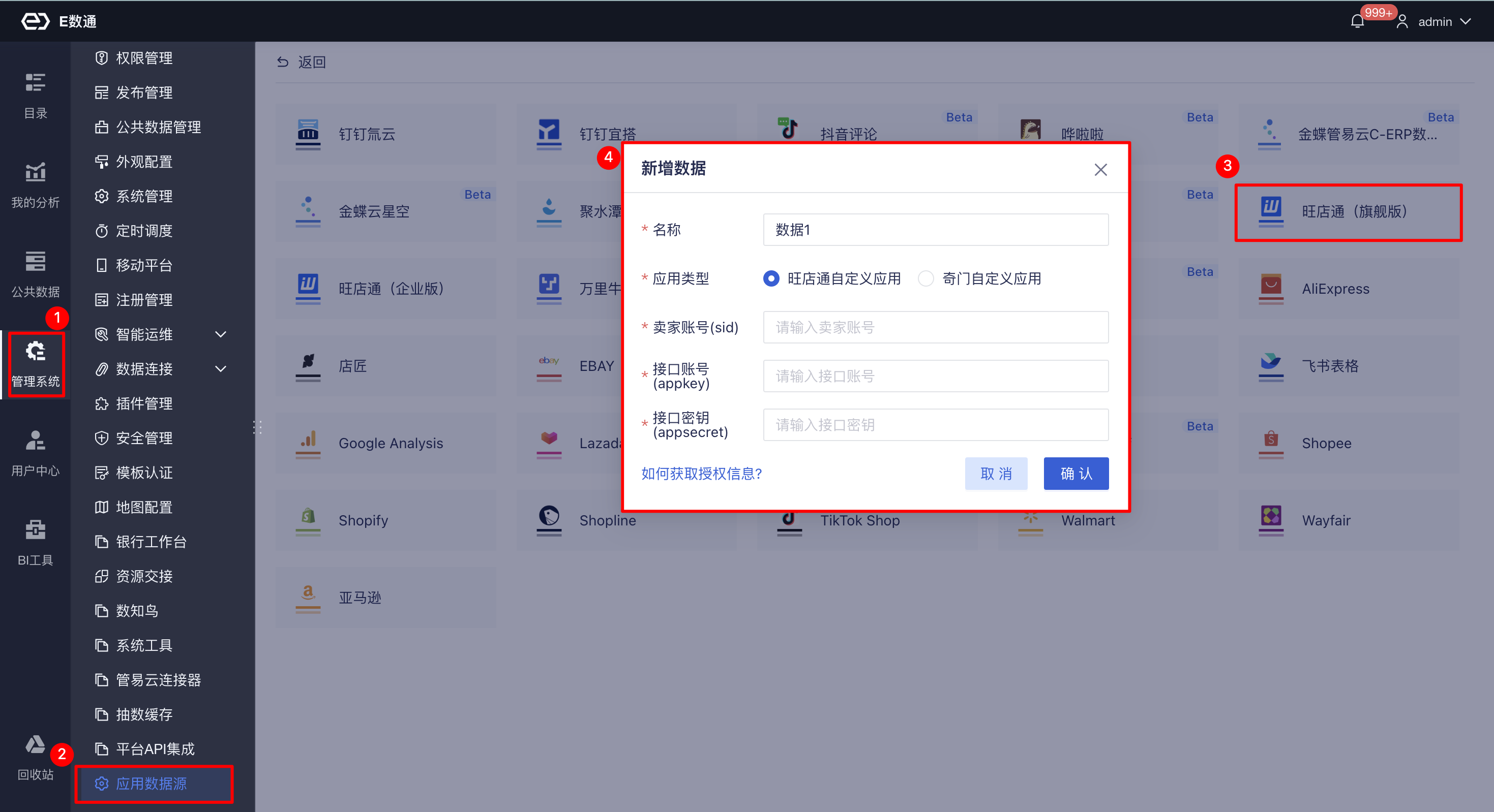 1)进入「管理系统>电商数据源」,点击「新增数据」,如下图所示: