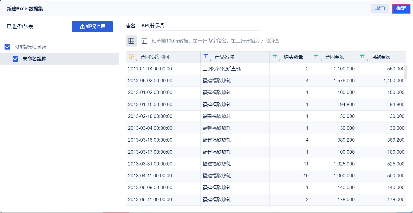 2)点击「本地Excel文件>上传数据」,上传表数据。如下图所示: