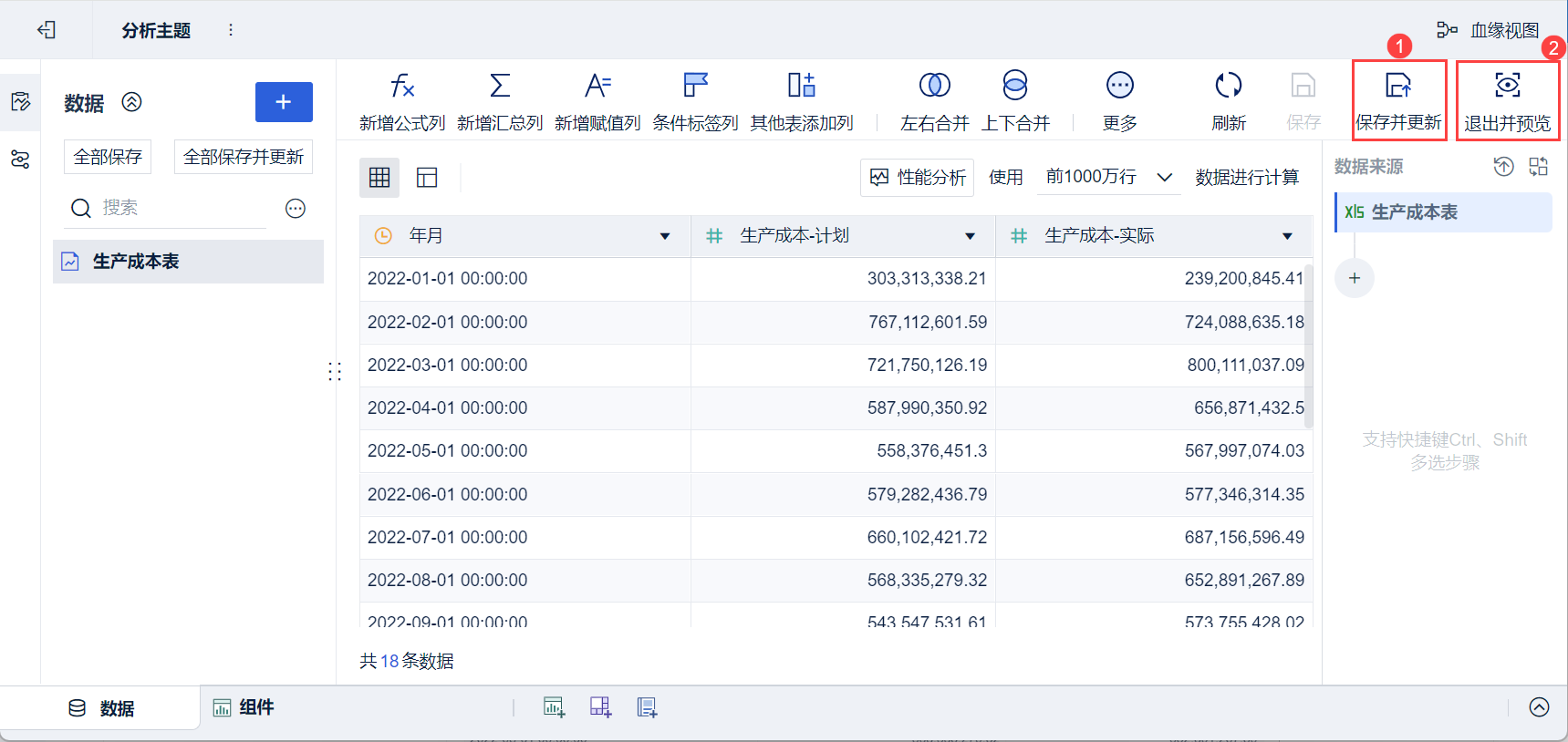 4)点击「保存并更新」、「退出并预览」,数据准备成功,如下图所示: