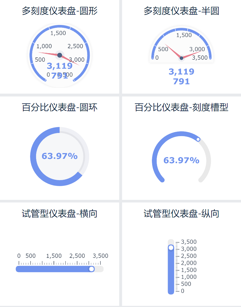 1)以多指针仪表盘为例,用户想要同时展示多维度值的仪表盘。