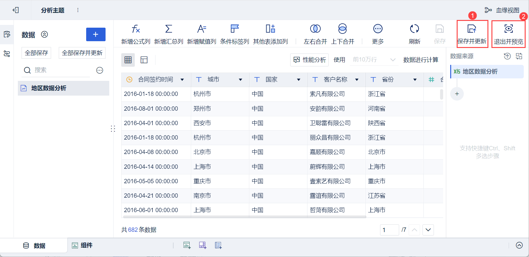 4)点击「保存并更新」、「退出并预览」,数据准备成功,如下图所示: