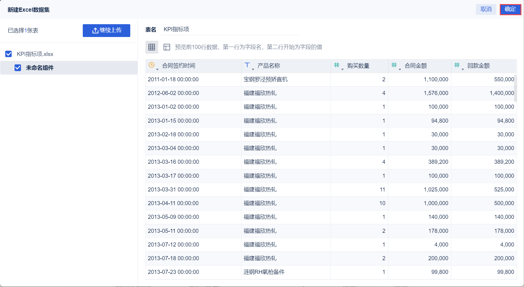 2)点击「本地Excel文件>上传数据」,上传表数据。如下图所示: