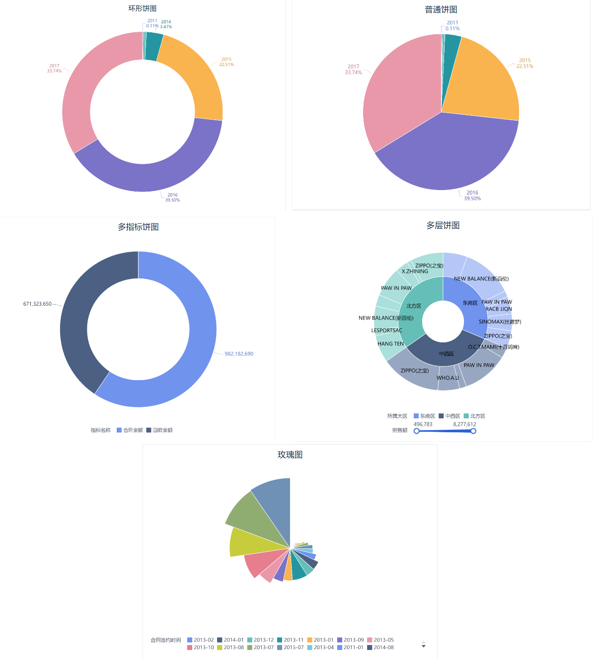 本文将介绍 FineBI 图表的基础样式效果以及一些创意效果,详情可点击超链跳转至对应的帮助文档查看。