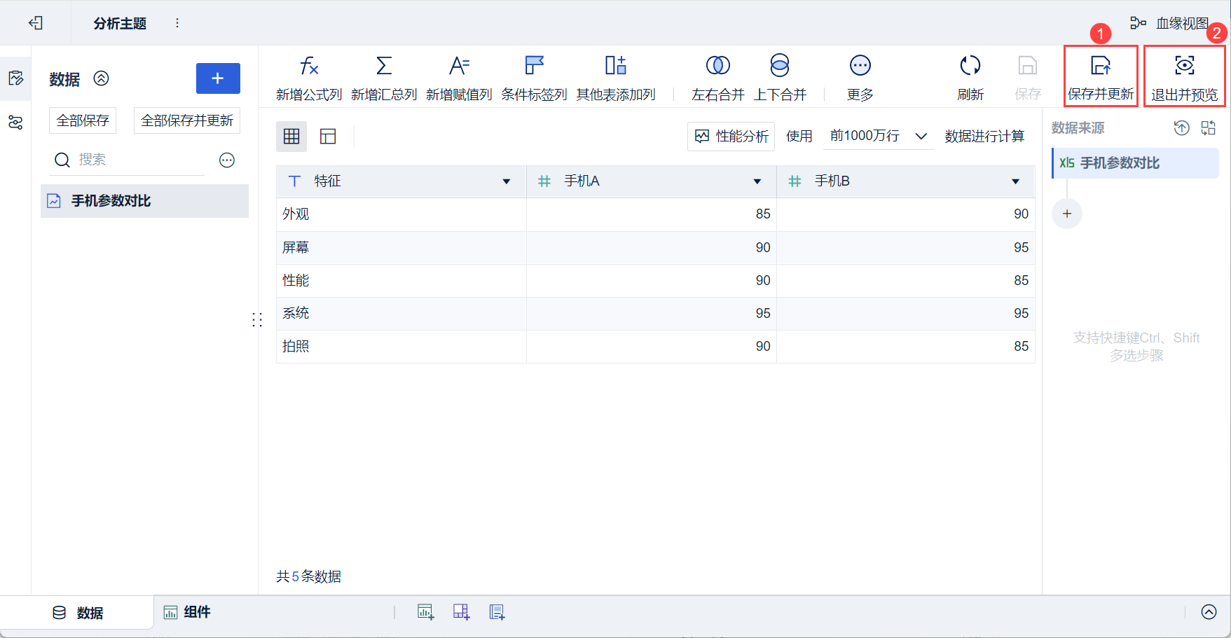 4)点击「保存并更新」、「退出并预览」,数据准备成功,如下图所示: