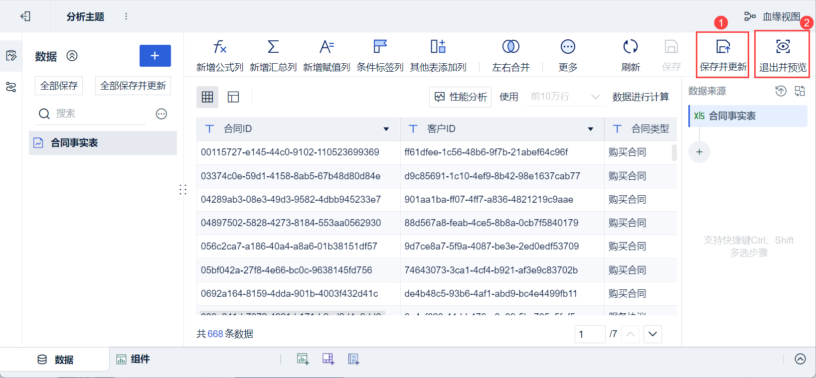 将左侧待分析区域的「合同金额」拖入标签栏,图表则显示合同金额标签,如下图所示: