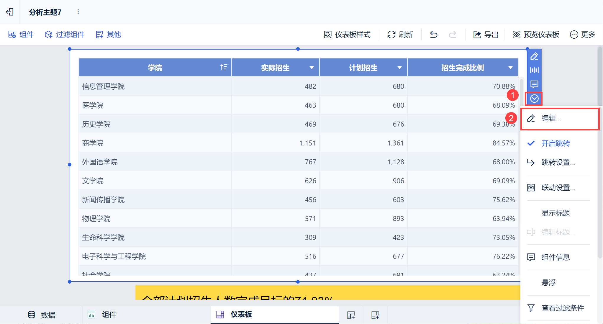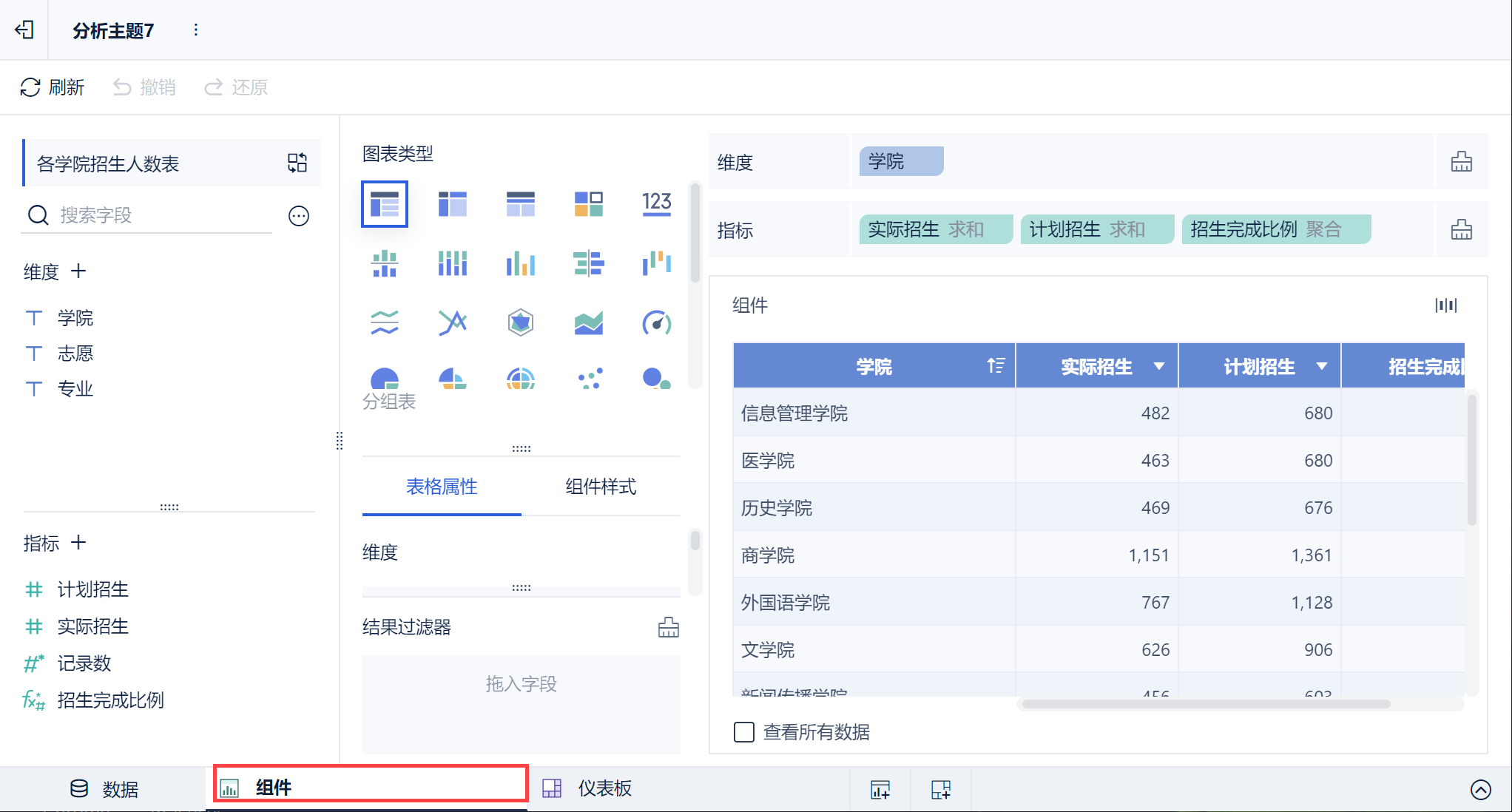 直接在分析主题中点击组件,进入组件编辑界面,即可直接编辑组件,如下图所示: