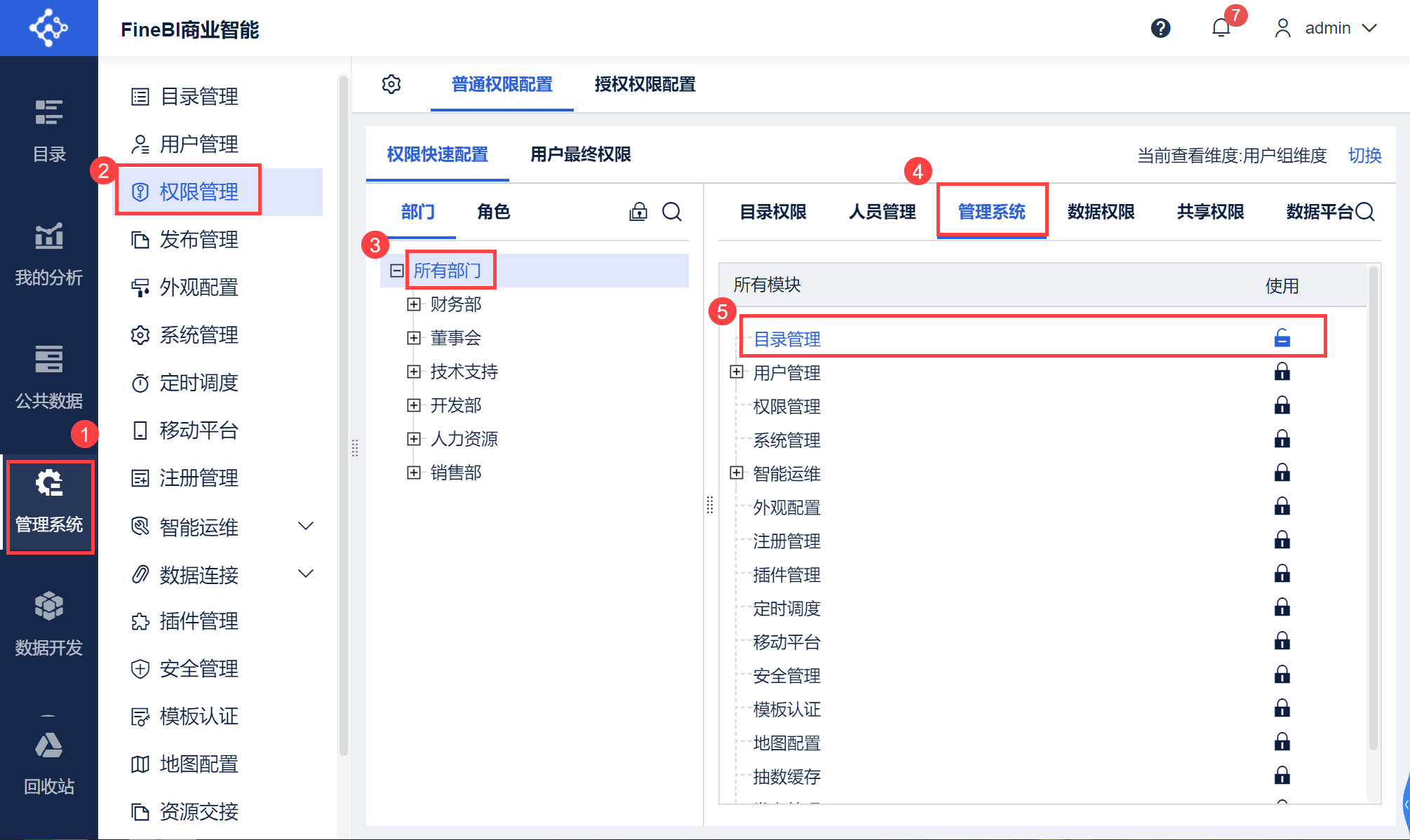 同时用户被赋予「目录管理」的使用权限,如下图所示: