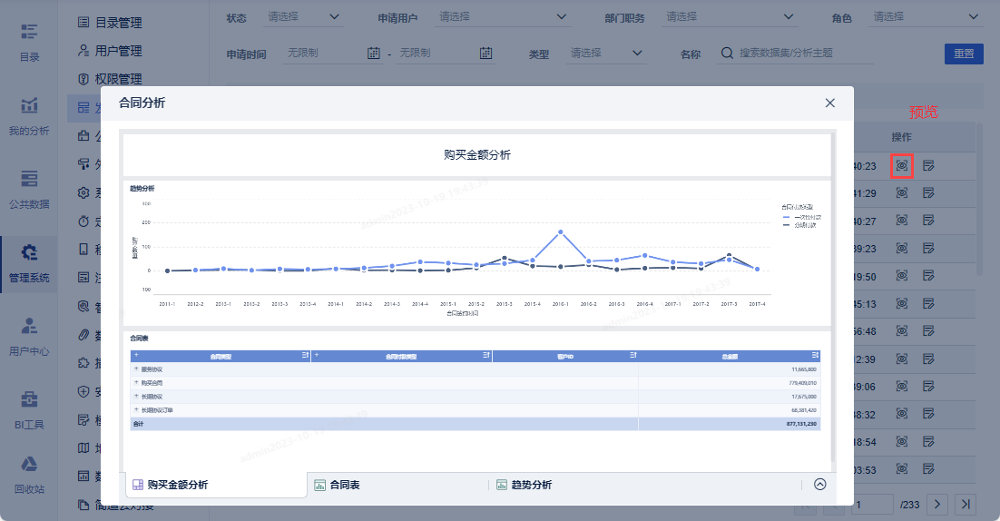 1)Anna 在「我的分析」中选择需要申请发布的主题「合同分析」,并选中「发布」,如下图所示: