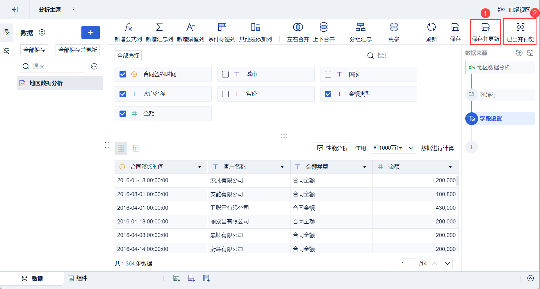 6)点击「保存并更新」、「退出并预览」,数据准备成功,如下图所示: