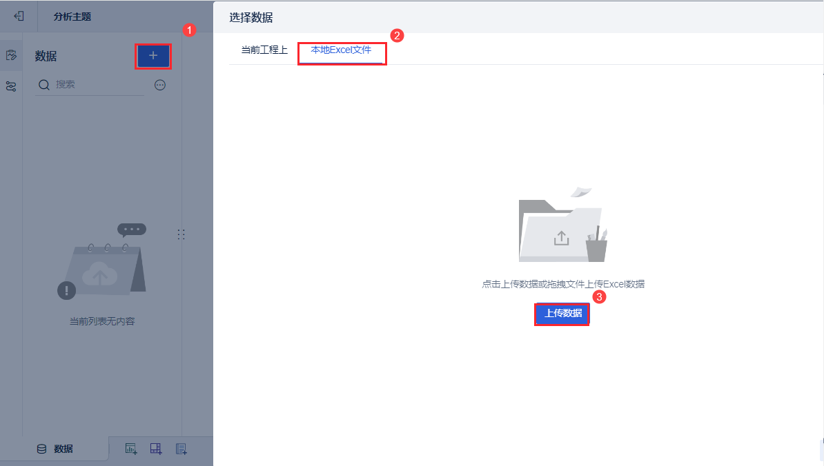 1)将示例数据添加进分析主题,如下图所示: