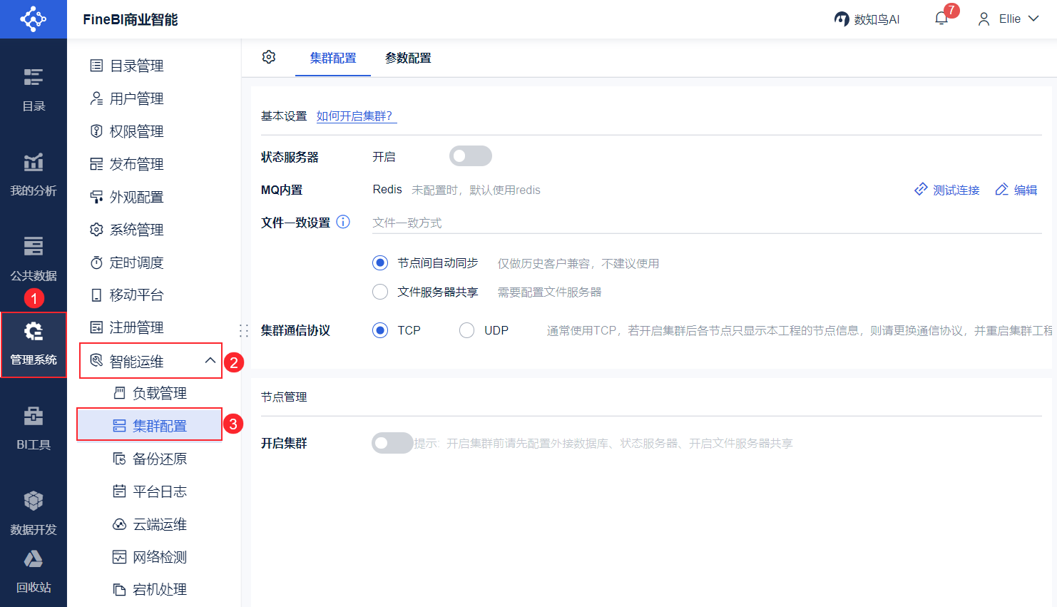 访问决策平台,选择「管理系统>智能运维>集群配置」,进入集群配置界面,如下图所示: