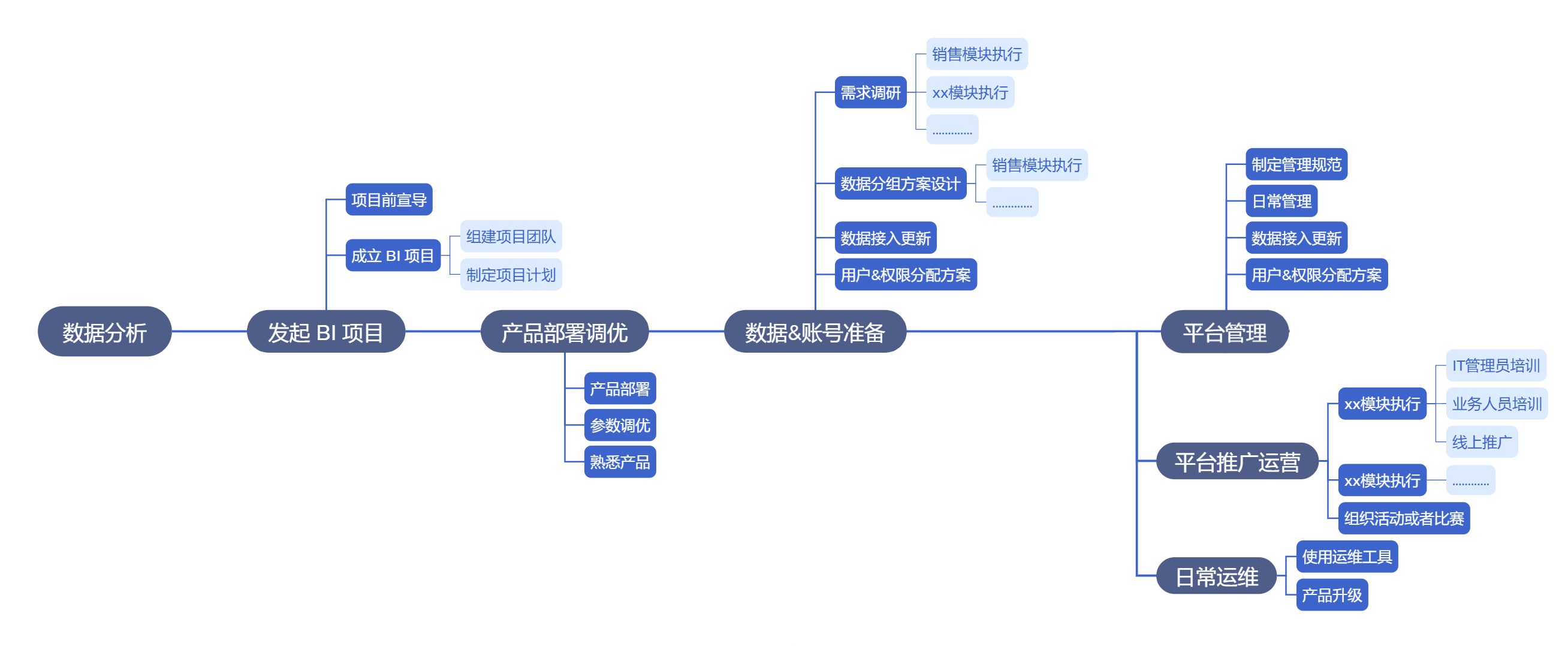 • 拆任务,这里我们推荐按照自助分析项目的生命周期来拆解工作。