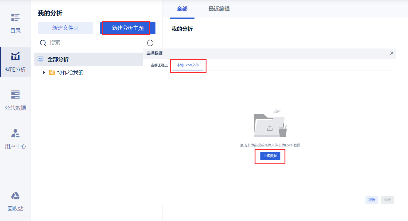 1)下载示例数据「合同事实表」,新建分析主题,上传数据集,如下图所示: