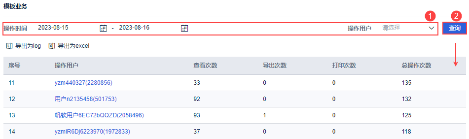 注1:支持筛选操作用户为空的日志,支持筛选模板名称为空的模板。
