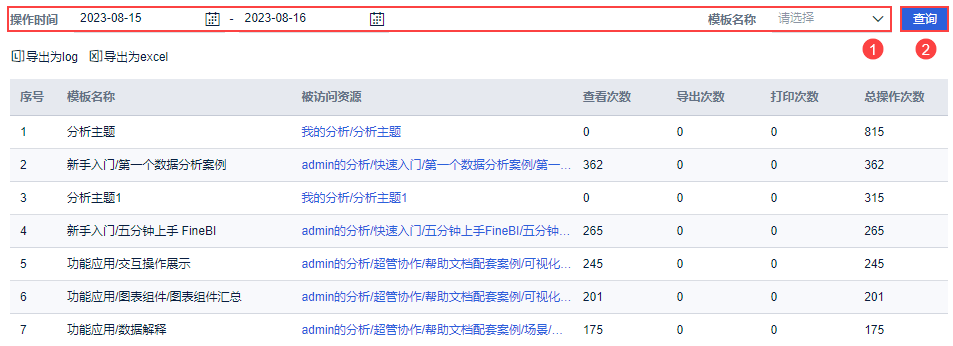 注4:FineBI 6.0.13 及之后版本,支持统计移动端访问模板的记录。