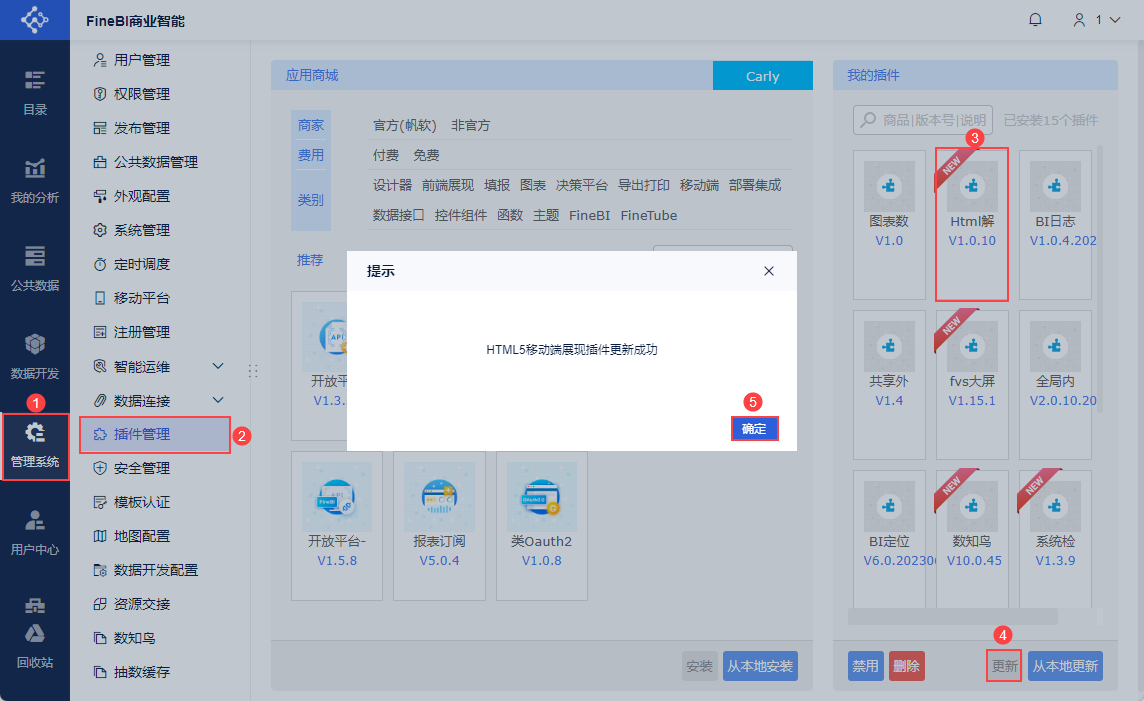 工程升级完成后,建议登录FineBI系统,点击「系统管理>插件管理」,对存在新版本的插件一一进行升级。