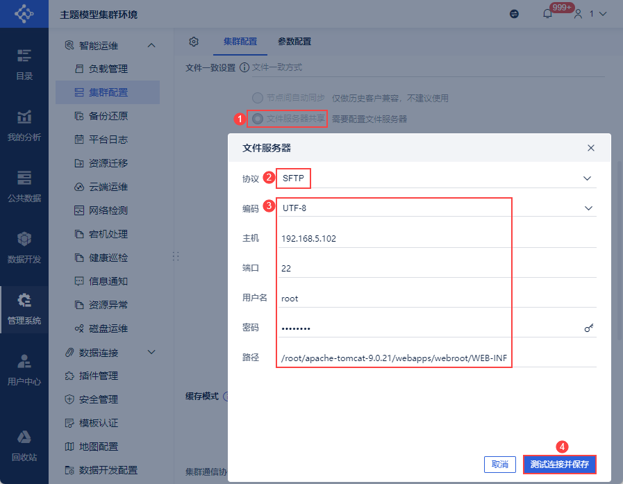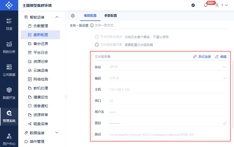 标准集群的文件一致性设置建议选择「文件服务器共享>SFTP」。