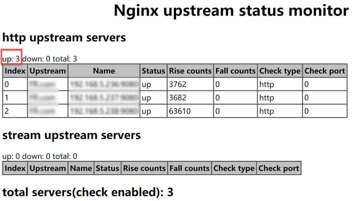 在浏览器输入ip:负载均衡端口号/status查看健康页面,可以看到工程各个节点的健康状态。
