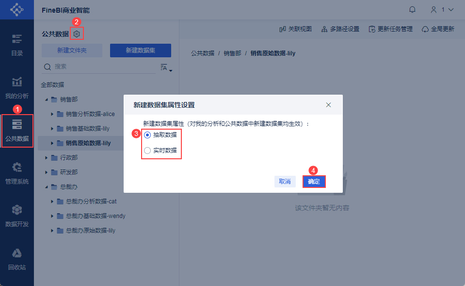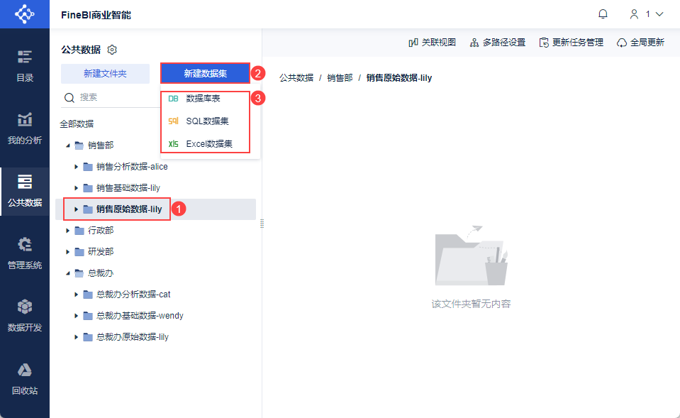 管理员需要搭建「公共数据文件夹体系」进行数据的分组,分门别类的将数据表存放在 BI 中,理清杂乱的数据关系。