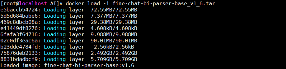 示例代码:docker load -i fine-chat-bi-parser-base_v1_6.tar