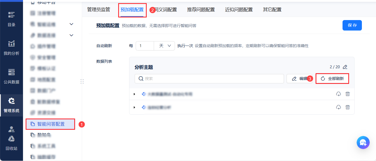 4)进入智能问答配置,手动刷新预加载,即可完成镜像升级