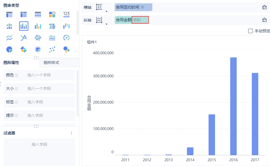 图表汇总方式的功能和逻辑与表格一致,本文仅作简单介绍,详细请参见:表格汇总方式 。