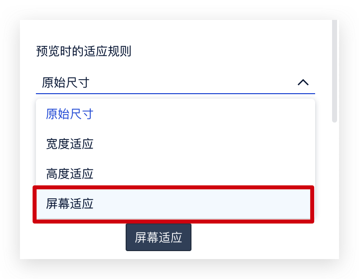 • 如果想要在预览时有充满屏幕的效果,那么我们可以将下面“预览时的适应规则”改为“屏幕适应”,这样在预览时就能填充满预览者的屏幕。