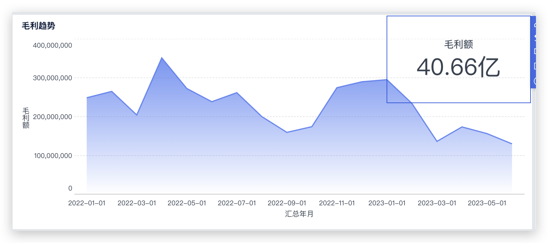 “毛利趋势”与“毛利额”默认16加粗;#38526b背景透明