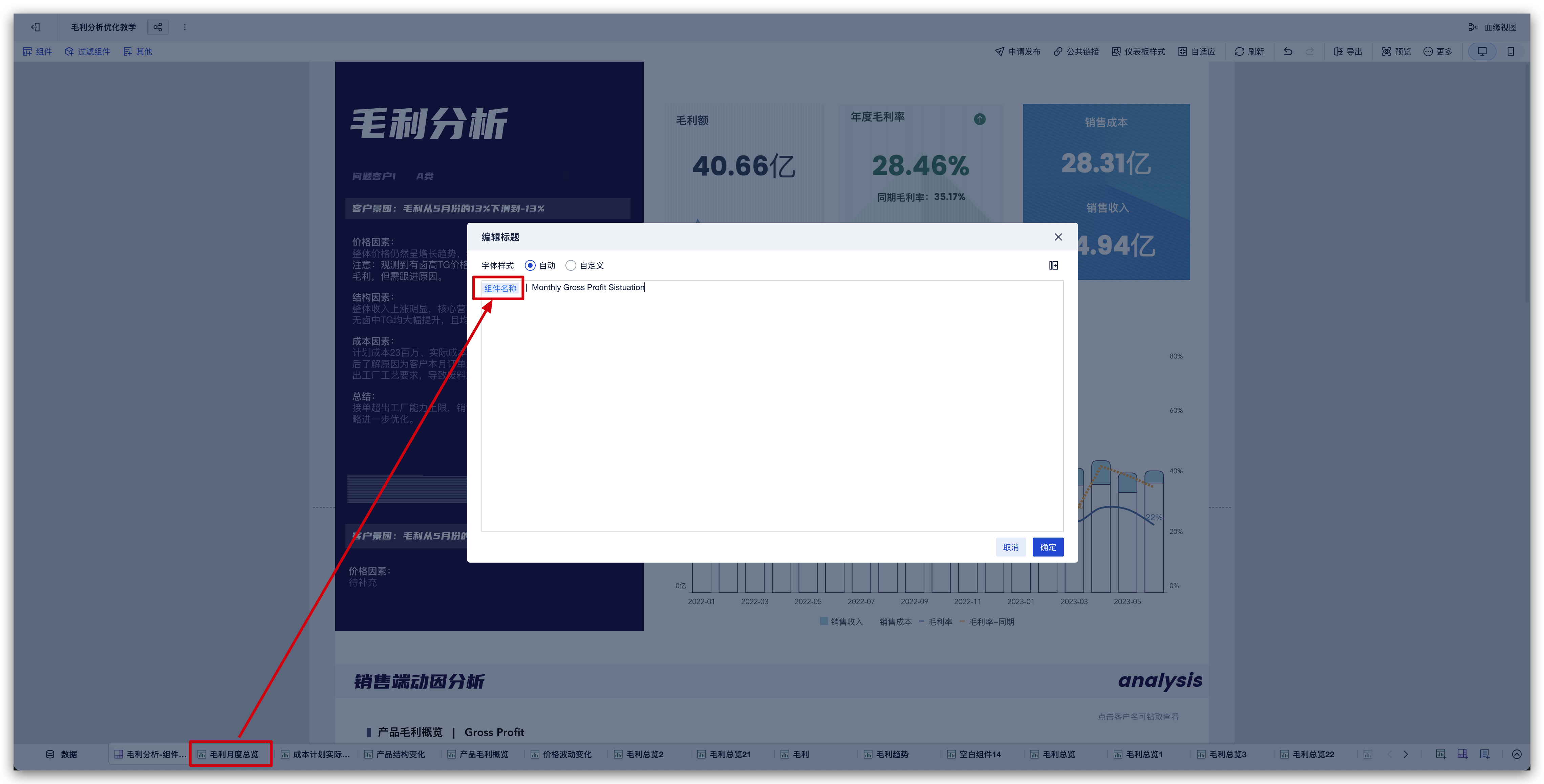 这里分享一个小技巧:若想在不改变组件默认标题样式的情况下给其增加文字,可以直接在仪表板中双击组件标题,在组件名称后面新增文字即可。