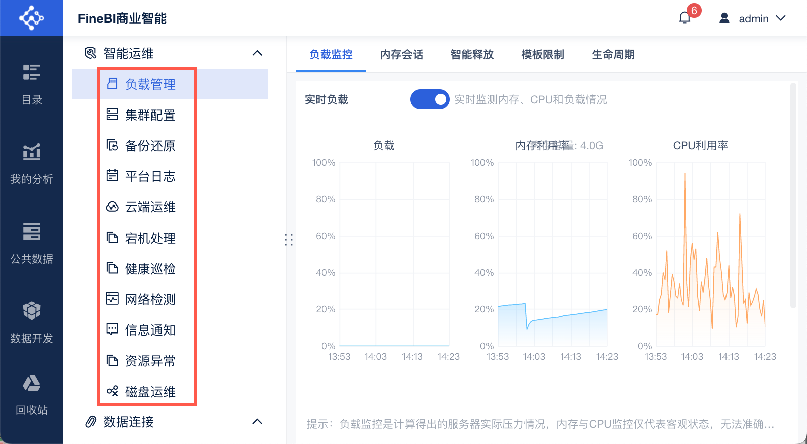 | 负载管理 | 负载管理包括负载、内存和 CPU 利用率的实时监控和预警,当负载达到指定的瓶颈值时触发短信、邮件、消息等的提醒。 此外还支持智能控制会话的存活、清除、模板限制、生命周期等,保障服务器的稳定运行。 | 负载管理 |