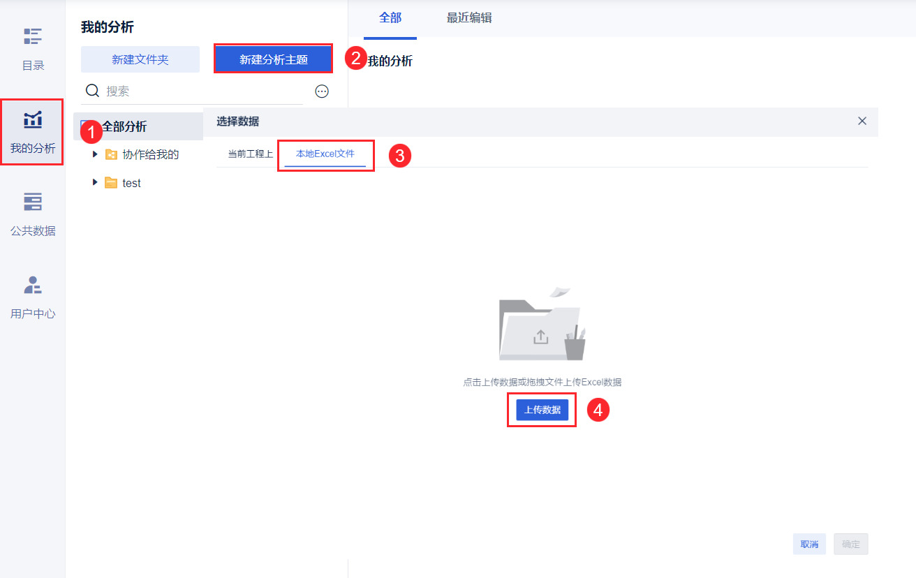 新建分析主题,添加下载的示例数据将示例数据「char」,默认全选字段,如下图所示: