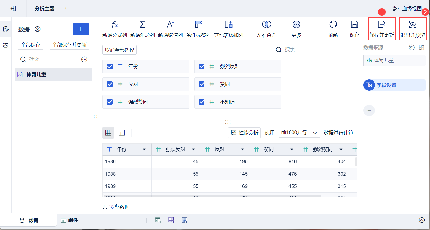 4)同样的方法继续添加「反对(当前维度百分比)」、「强烈反对(当前维度百分比)」、「强烈赞同(当前维度百分比)」、「赞同(当前维度百分比)」4个计算字段,此处不再赘述。